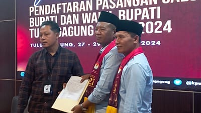 “Dan pada hari ini Rabu tanggal 28 Agustus 2024 ,bersama partai pengusung dan para relawan, kami ikut mengantar dan mengawal pasangan GABAH mendaftar ke KPUD Tulungagung, selanjutnya seluruh pengurus Pimcab juga Pimcam partai PKN Tulungagung sudah berkomitmen akan mendukung dan berjuang memenangkan Bapak. H.Gatut Sunu Wibowo,S.E.,M.E dan Bapak.Ahmad Baharudin ( GABAH ) menjadi Bupati dan Wakil Bupati Tulungagung pada Pilkada 2024 ini ” Tutur Imam Turmudi,SH kepada awak media disela sela kegiatan pendaftaran pasangan GABAH di KPUD Tulungagung.Pasangan H. Gatut Sunu Wibowo, S. E., M. E dan Ahmad Baharudi ( GABAH ) dijadwalkan akan mendaftarkan diri pada hari ini rabu tanggal 28 Agustus 2024 pkl 10.00 wib, ke KPUD Tulungagung.